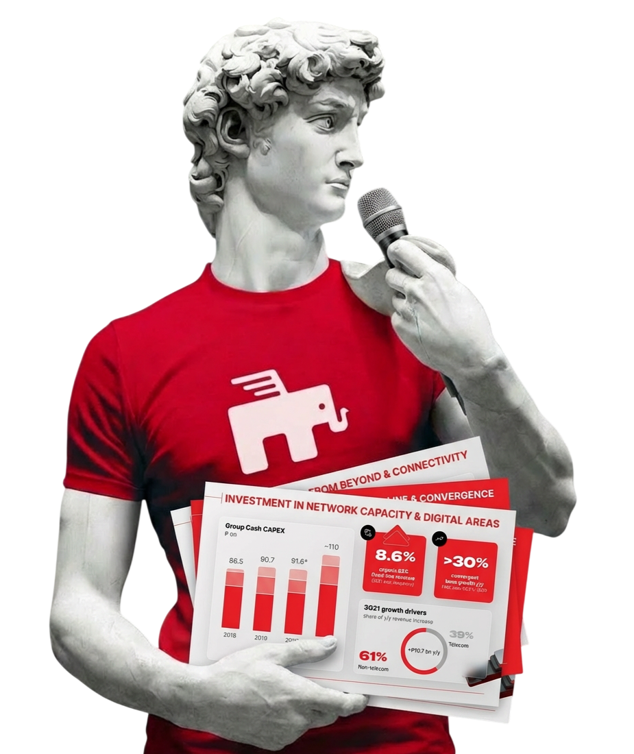 До тренинга мы изучаем отчёты, которые команда делает прямо сейчас: финансовые сводки, операционные отчёты, KPI, аналитика продаж. На тренинге разбираем их вместе. Участники уходят не с абстрактной теорией, а с конкретным пониманием как переделать свои слайды так, чтобы они работали.